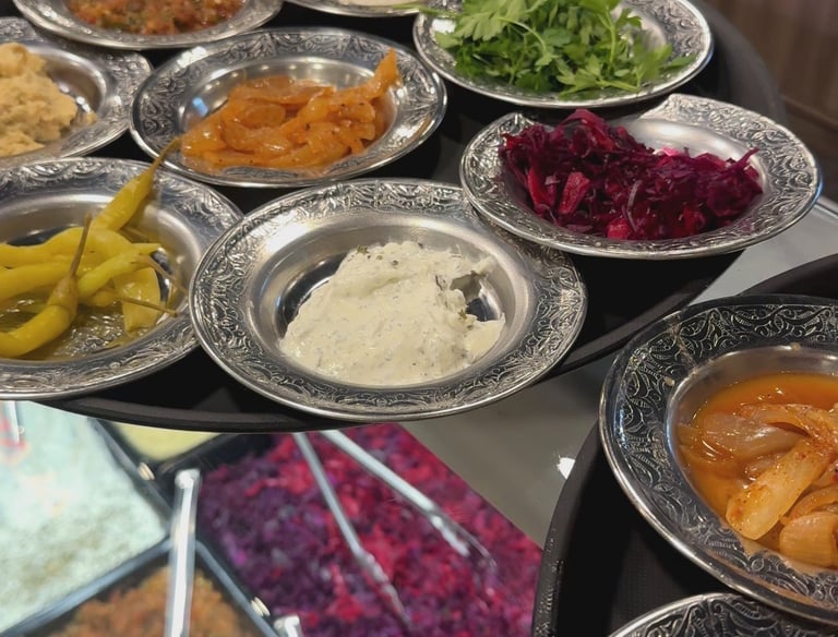 Huisgemaakte koude en warme mezes bereid met verse ingrediënten en rijke mediterrane smaken.